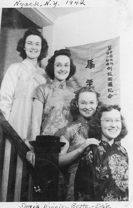 Another memory might be one I imagined, after it was told to me so many times. Mother was stuffing our dolls into a wood burning stove in the living room. Both my sisters were crying. Why was Mother doing this? She thought that if we left the dolls in the house after we left for America, the Chinese would think they were our idols. She could not pack them nor leave them. My parents had started to pack our belongings to return to America. Every seven years, at that time, missionaries were granted a visit back to the U.S. to see family members and to raise funds in their churches to support them on the mission field.