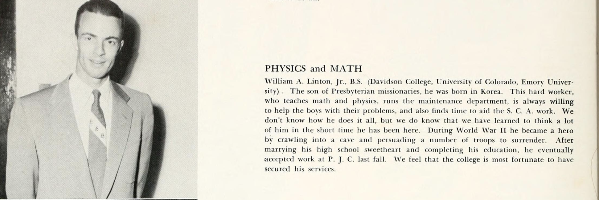 Dow was not fulfilling for Bill. We left Michigan when Bill found a job with the Presbyterian Junior College in Maxton, North Carolina.